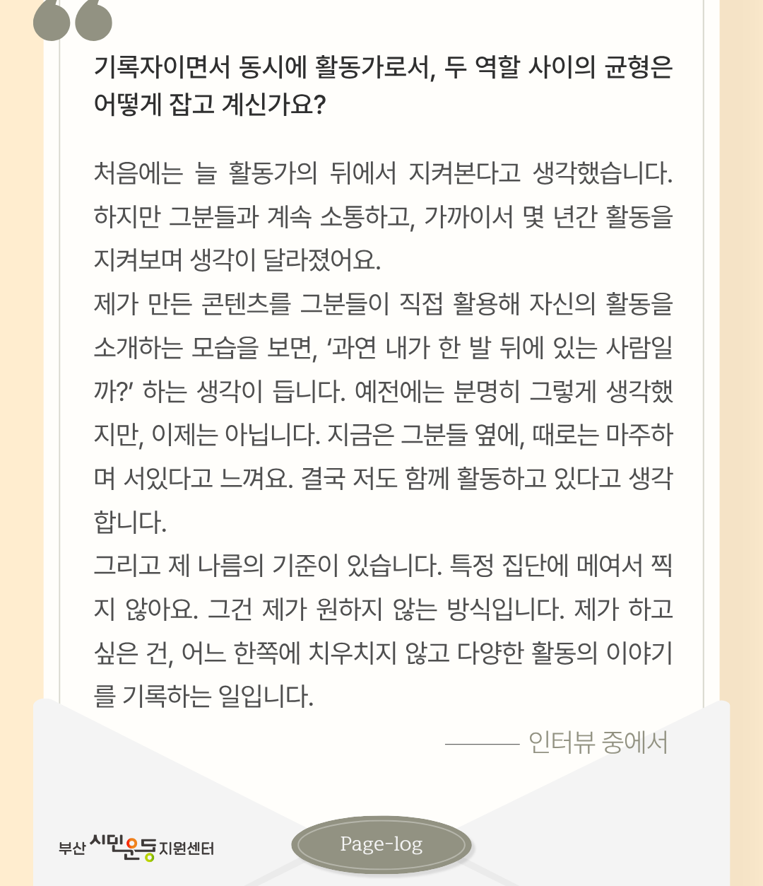 매주 공개되고 있는 'Activist Page-log'의 노션 아카이브 페이지와 인터뷰에 대한 소감과 응원을 남길 수 있는 패들렛 페이지를 오픈했어요!