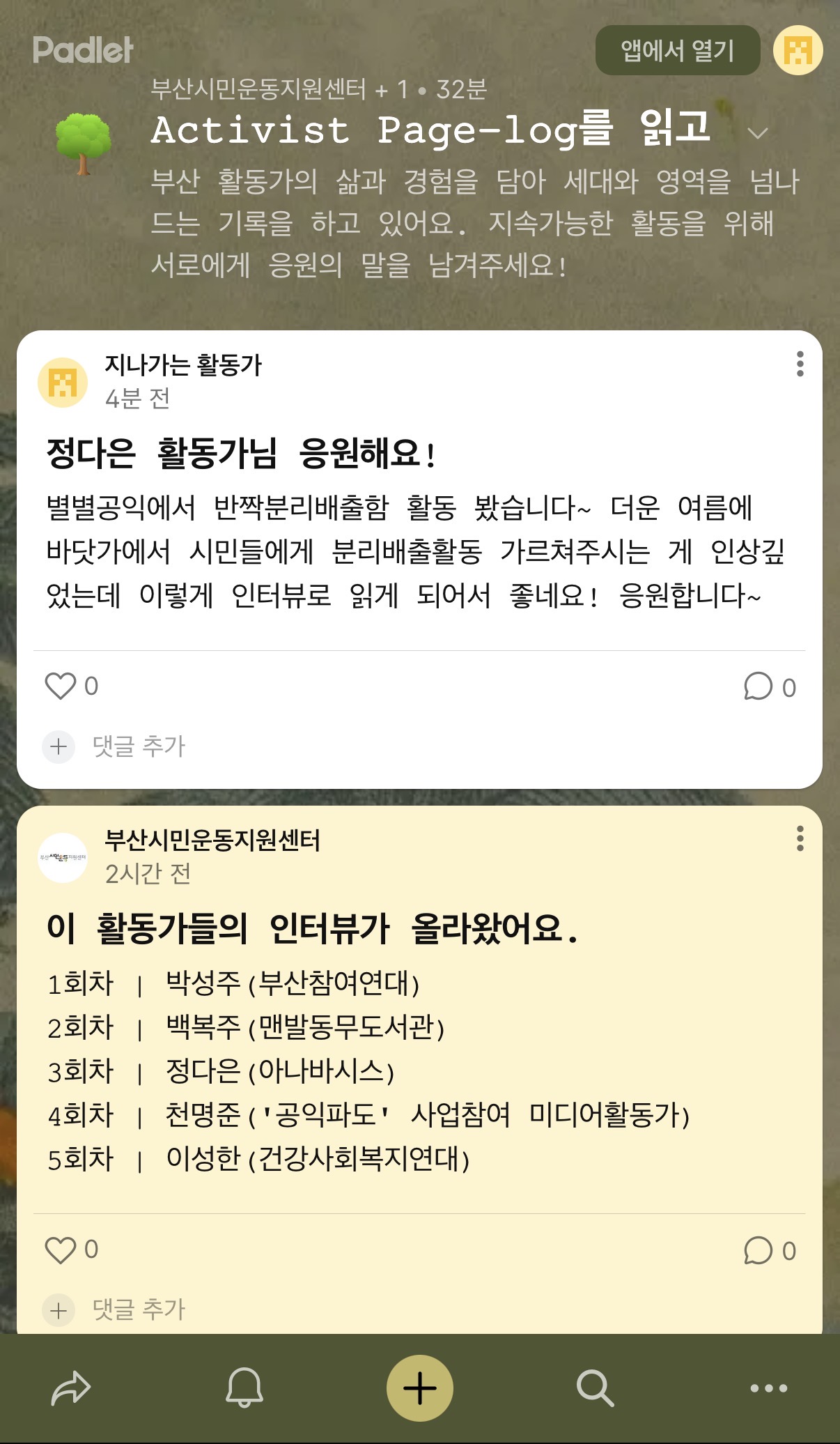 'Activist Page-log' 응원의 메시지