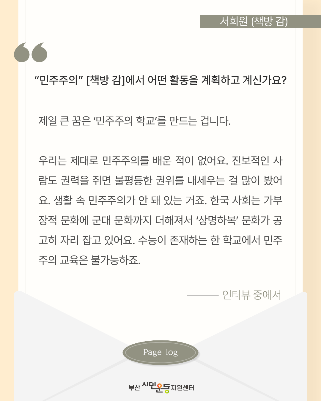 사적으로 활동가들과 연결된 것이 처음이라 기대가 컸어요. 활동가로서 겪는 이야기를 쉽게 공감할 수 있는 또래 활동가가 있다는 것만으로도 위로와 지지를 얻을 수 있었어요. 우리는 어떻게해서 시민운동을 하게 되었는지 진솔한 이야기를 나누면서 각자의 열정과 선한 가치관을 나누는 자리였어요!