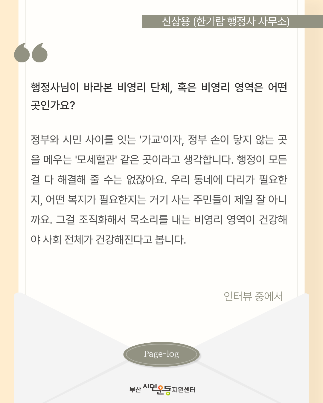 "성과관리는 누구를 평가하기 위함도, 누구로부터 평가받기 위함도 아닙니다. 성과관리는 우리 스스로 우리의 활동이 사회에 어떤 변화를 만들어내고 있는지를 확인하는 과정입니다. 그래서 성과관리는 '끊임없이 학습하고 개선하는' 조직문화가 필요합니다. 역으로 성과관리를 통해 그런 조직문화를 만들어갈 수도 있습니다. 성과는 눈에 보이지 않는 것이 아니라, 우리가 구체적으로 드러내지 않고 있는 것입니다."