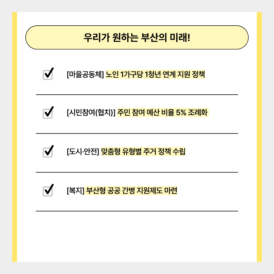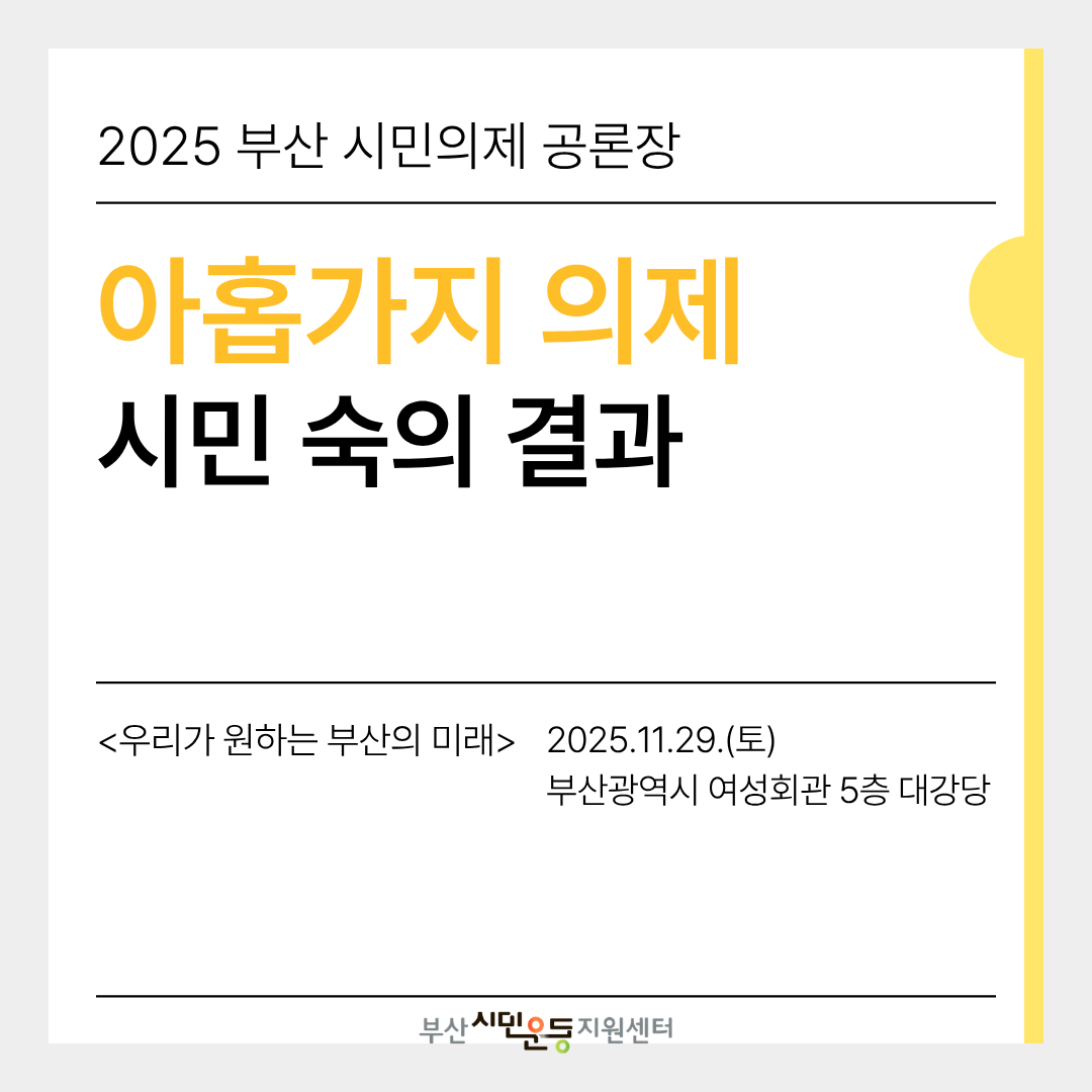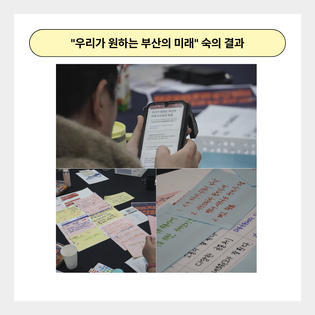시민의 숙의로 만들어진 이 결과는 부산 지역사회가 함께 쌓아 올린 공동의 자산이며, 정책과 제도로 연결되기를 기대합니다.